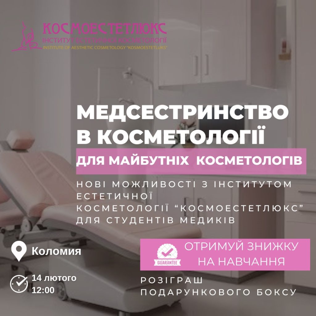 Запрошуємо цієї середи 14 лютого усіх бажаючих на профорієнтаційних захід для студентів медичного коледжу від Інституту естетичної косметології «КОСМОЕСТЕТЛЮКС»🤗