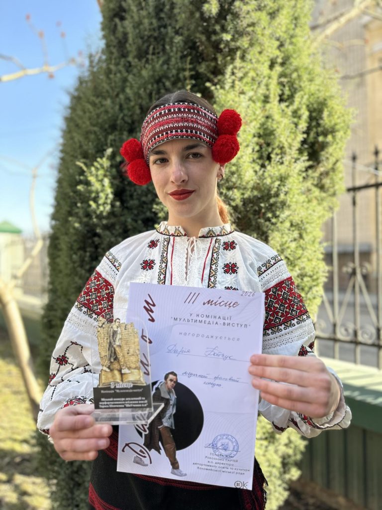 🎉Вітаємо Бойчук Дарію (група 2Ф1)- lll місце в номінації "Мультимедіа-виступ" і Вербіцьку Лілію (група 2М1)- диплом за участь!!! 🏆 Студенти Коломийського медичного фахового коледжу ім.І.Франка Бойчук Дарія (група 2Ф1) уривок "І мертвим, і живим, і ненародженим", Вербіцька Лілія (група 2М1) "Сон", Фучинська Інна (група 3П1), Даниш Ірина (група 1М1), Кресало Дар'я (група 1Ф1) - "Зоре моя вечірняя" у межах відзначення Шевченківських днів 11 березня о 13:00 у приміщенні Народного дому взяли участь у міському конкурсі декламації та перфомативного втілення поезії Тараса Шевченка «ШеVченко 2.0». 🔊 Конкурс проводився з нагоди відзначення Шевченківських днів з метою популяризації творчої спадщини Тараса Шевченка, осмислення його творчості у сучасному контексті серед учнівської та студентської молоді, а також виконавців та творчих колективів громади. 🧩 Організатором конкурсу був Сектор з питань молодіжної політики Управління культури та туризму Департаменту освіти та культури Коломийської міської ради. 🎭 Конкурс проводився в Палаці культури та мистецтв «Народний дім», за адресою: вул. Театральна, 27, м.Коломия, 11 березня 2026 року о 13.00 год. До участі запрошувалися студенти коледжів та закладів вищої освіти, викладачі, педагоги та колективи закладів культури територіальної громади.