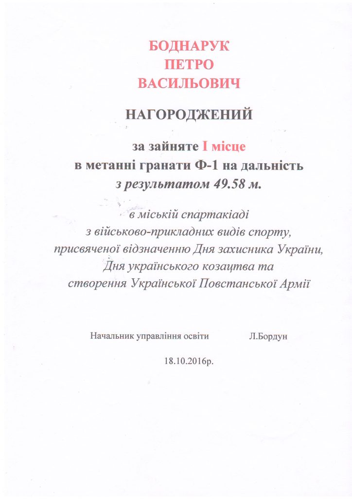 Завідуючий фельдшерським відділенням Григорчук Т.В. сказав, що Петро був допитливим студентом, займався спортом, а головне – наполегливо опановував свій фах.
