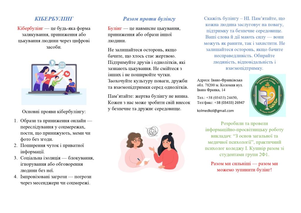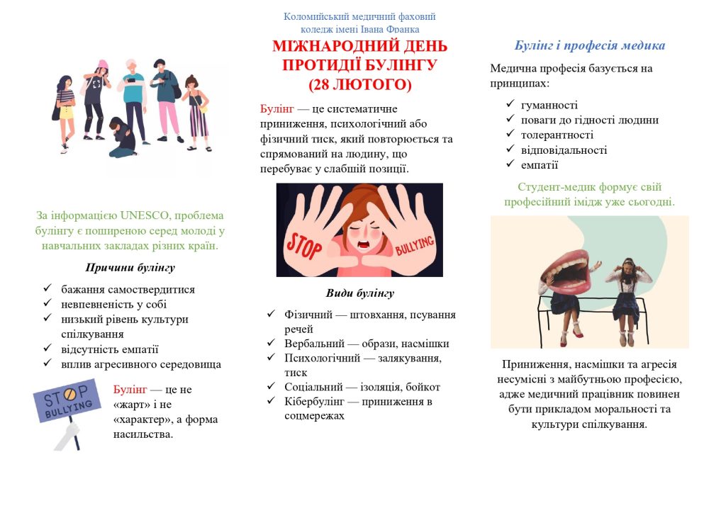 🎯Коломийський медичний фаховий коледж імені Івана Франка підкреслює свою непохитну позицію щодо булінгу — “Нульова толерантність до булінгу в освітньому середовищі!” Це явище, яке руйнує довіру, підриває психологічне здоров’я і створює токсичне середовище. Булінгу не місце в нашому колективі та освітньому середовищі.